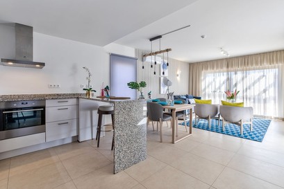 These roomy and modern apartments, with an open plan living area have been designed to the highest standard, benefiting from a cool and breezy beach-inspired look. The property is fully furnished, equipped and complete with 2 bathrooms (1 en-suite). The apartment has a generous amount of natural light which creates a pleasant and homey atmosphere. The properties are equipped with air conditioning as well as separate electric underfloor heating throughout, in order to create the perfect room climate and temperature.