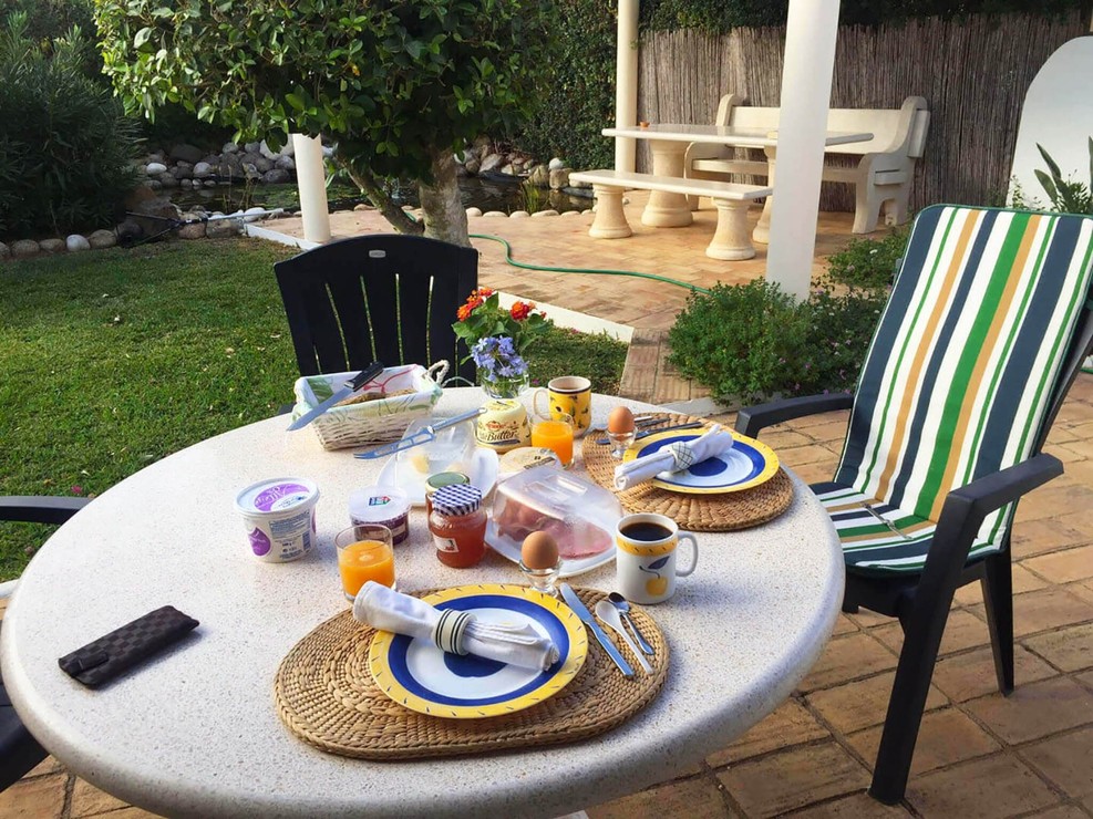 Poderá relaxar no terraço, com mesa e cadeiras, e desfrutar dos peixes no lago. Existe um segundo terraço com BBQ. O Jardim é composto por relva e flores.