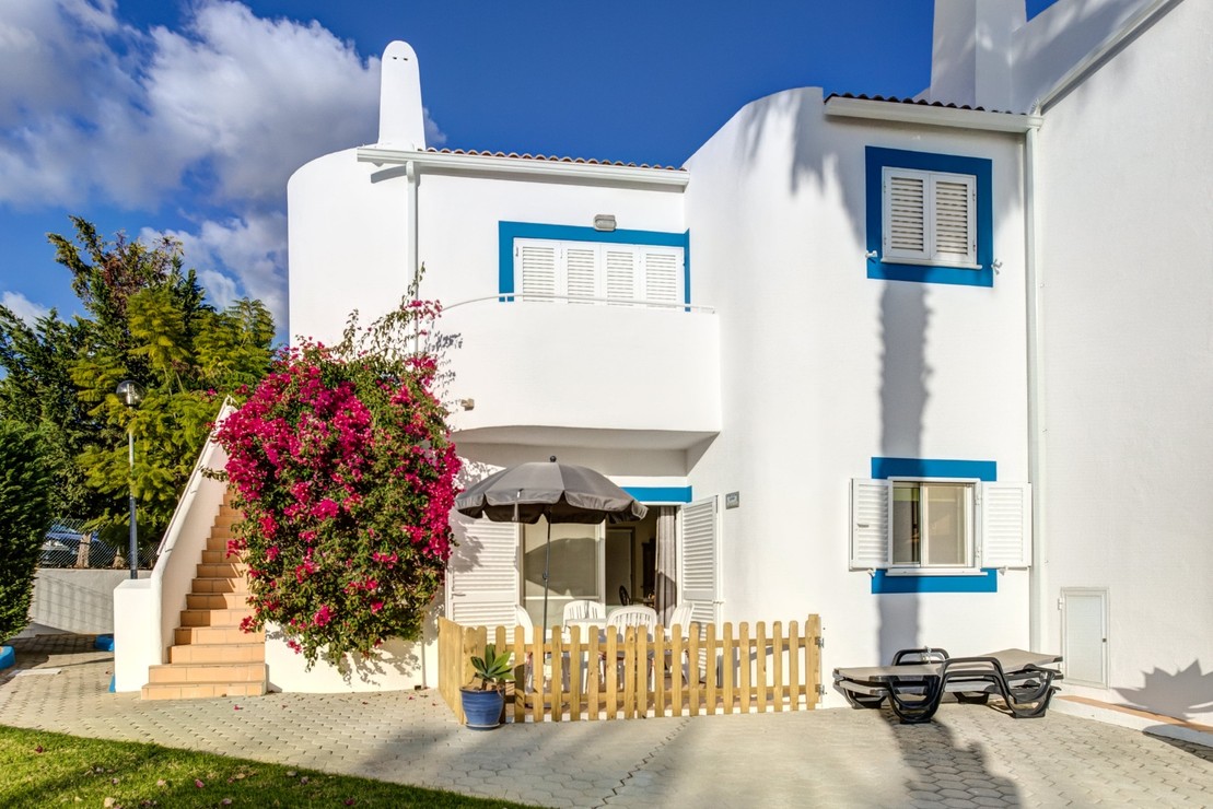 Cómodo apartamento localizado no rés-do-chão e primeiro andar. Situados numa zona tranquila e perto da segunda área de piscinas da Quinta do Paraiso. Os terraços vistas para os jardins ou para a piscina.